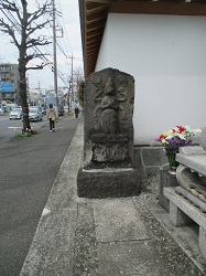 長泉寺の門前に元禄6年(1639)造立の三猿の上に青面金剛が乗る庚申塔が置かれている。