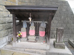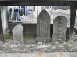 旧道に入ってすぐの街道際に水難者供養塔・地蔵尊・庚申塔が建てられている。明治時代までは鶴見川水系の氾濫が幾度となく繰り返された歴史がある。