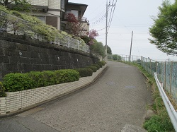 街道に戻り、白根通りを北上して行くと横浜白根郵便局隣の相鉄ローゼンの裏の細い道が旧道で、しばらくは緩い上り坂を上っていく。