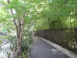 鎌倉街道の旧道はこの先から消滅しているので、都立大駅前信号の少し先、病院横の路地に入り、呑川柿の木坂支流緑道を行く。