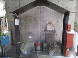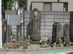 文政元年(1818)造立というこの地蔵尊の台座部分は道標となっており、「右大山道 南無阿弥陀仏 左祐天寺道」と刻まれている。説明板に、「江戸時代には人家もまばらなさびしい道で旅人はこの道しるべを見て安心したことでしょう」とあるが、おしゃれな街として若者を惹きつける今日の代官山にあっては全く想像もできない。