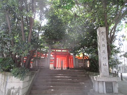 八幡宮の隣に朱鮮やかな鳥居が並ぶ豊栄稲荷神社が鎮座する。