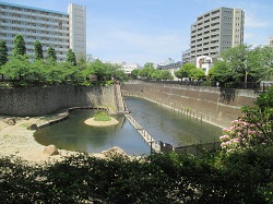 紅葉橋を渡ると十条の高台へ上っていく。周辺は道路が新しく整備され比較的新しい団地が大規模に造成されている。