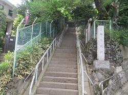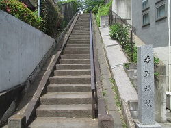 坂を下りJR埼京線のガードを潜ると左に上る坂道があり、大きな法真寺題目塔が建つ坂を道なりに上っていくと右手に香取神社の石標があり、かなり長い上り石段を上る。