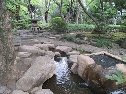 青山通りに合流した少し先、カナダ大使館手前に高橋是清翁記念公園がある。きれいに整備された園内は、多くの木々の中に池を中心として石像や石灯籠が配置され、静かで落ち着いた雰囲気で、公園の一番奥まったところには高橋是清翁像が見える。2・26事件で暗殺されたのはこの地にあった自宅だった。