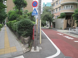 すぐ先の右手の緩い下り坂は弾正坂、さらに旧道が青山通りに合流するところで左から上ってくる急坂は薬研坂と、このあたりは実に坂道が多い。