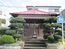 大山街道はこの交差点から左に入っていく。最初の丁字路を右に曲るところに真新しい小さな馬頭観音が建っていた。