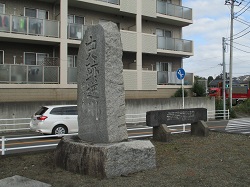 街道は馬頭観音の先から道成りに坂を下っていく。厚木街道を渡ってすぐ先の川沿いのところにかつて目久尻川にかけられた石の橋の跡を示す標柱が立てられており、街道に戻って目久尻川を渡って右へ曲るとフェンス越しに石橋供養塔が見える。ここは当時としては珍しい石橋が架けられていた場所にあたり、宝暦(1751~1764)の頃、重田七三郎なる人物が浄財を募って架けたもの。その徳を偲んで供養塔が建てられたという。