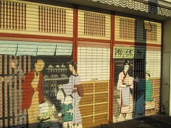 渡船場跡から南へ歩くと厚木宿上宿となり、その先に中宿、下宿と続き、天保の頃、すでに街道の真ん中に用水掘りが掘られ両側には豪商が軒を並べていたという。小江戸と呼ばれた厚木宿は明治以降もその賑わいが続いたが、近年はシャッターに華やかな時代の商家の風景が描かれる街となっている。
