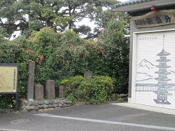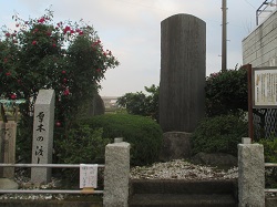 その目と鼻の先の歩道際に渡辺崋山滞留の地碑が立っている。天保2年(1831)、お銀様を訪ねた渡辺崋山は厚木まで足を伸ばし、旅籠萬年屋に2泊して地元の著名人と交流を深め、斉藤鐘助なる書家の願いに応じて厚木六勝を描いた。