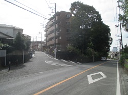 現代版大山街道碑が立つさがみ野2丁目交差点を通り、相鉄線の踏切を斜めに横切って左からの道に合流して進む。しばらく進んで大塚本町交差点に来ると、道は複雑に交差する。