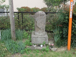 この交差点角の万年屋横に、ほとんど風化している小さな石塔が置かれていた。この辺りにかつて大塚宿があって賑わったらしいが、今その趣はほとんど残っていない。