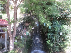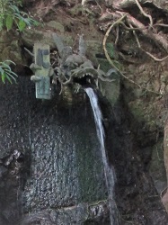 愛宕橋から進んで次の良弁橋を渡ると開山堂があり、その隣の良弁滝では龍の口からこんこんと水が流れ落ちている。