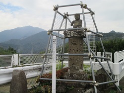 ほどなく十字路に差し掛かるが、ここに建つ三所石橋造立供養塔は用水に掛けられた台久保橋、石倉橋、川上橋を供養するためのもので、享和2年(1820)に建てられたもの。