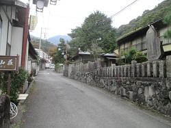 その先の旅館専用橋を渡ったら車道を横断して昔ながらのたたずまいが残るとうふ坂へ。江戸時代の参詣者は手の平に乗せた豆腐をすすりながらこの坂を上ったのだとか。