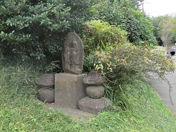 石倉橋信号周辺は遺跡発掘工事の柵で広範囲に囲まれているが、少し脇のスペースには、旧い道標や地蔵尊が並べられている。この周辺では各地から発した大山道が集中しており、道標にはそれが分かる文字が刻まれていたのだそうだが、今は風化して殆ど読めなくなっている。