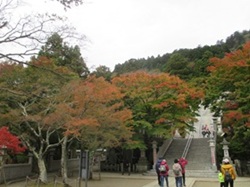前不動を過ぎると左に大山寺への長い石段が続く。ここは、紅葉の名所で、ちょうど見ごろの紅葉を楽しもうという人達が多くなっている。