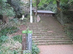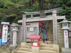 ここから山頂を目指すには拝殿左手の片開きの登拝門という本社登り口から入るのだが、登拝門前で初穂料100円を納め、自分でお祓いをしてから登拝門をくぐる。そこから先は本坂と呼ばれる急階段が続く。
