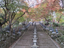 女坂には多数の石塔、石仏などがあり、案内標識も随所に設けられていて、多くの参拝者に対する配慮が感じられる。