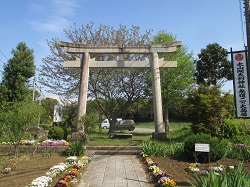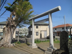 神川橋を渡ると平塚市田村地区に入る。田村道というのはこの地の名にちなんでいる。橋を渡りきる手前右手に田村八坂神社が見える。真新しい感じだが、蝦夷征伐に向かった坂上田村麻呂が当社に戦勝祈願を行ったと伝えられる。