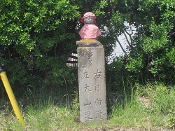 道標には「左 大山道 右 ひなた道」とあり、田村道は左に曲がり、日向薬師へは直進する。日向薬師からは見晴台を経て大山へのぼるルートがある。