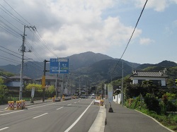 やがて新湘南バイパスに接するような形で進む緑豊かな並木の道を行くと、その先は所々に畑も残る田舎道の風情となる。ふと見ると、街道のずっと先の方には富士山が見えている。