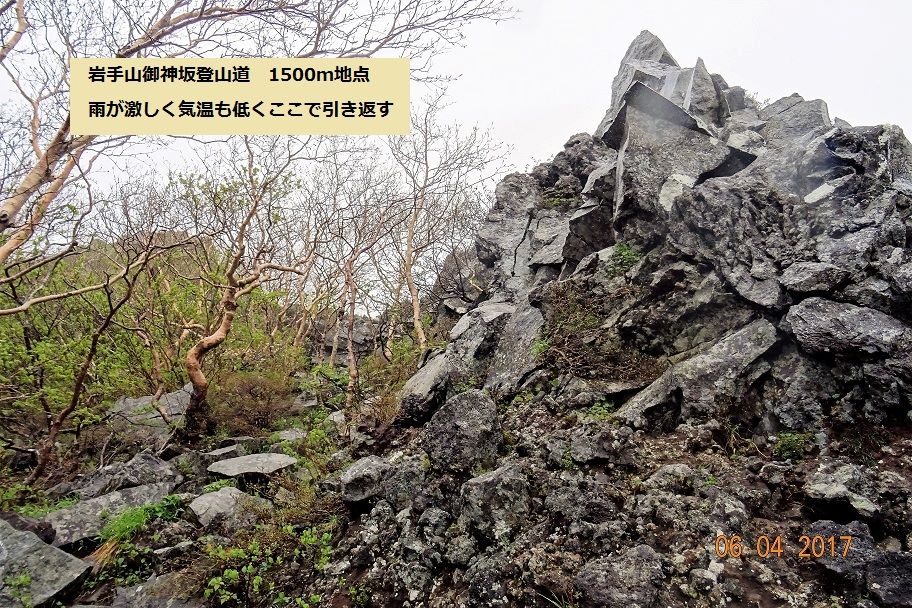 まで送迎してもらい小雨の中、登山を開始したが、しだいに雨が激しくなり寒さも加わり1500m地点で登頂を断念し